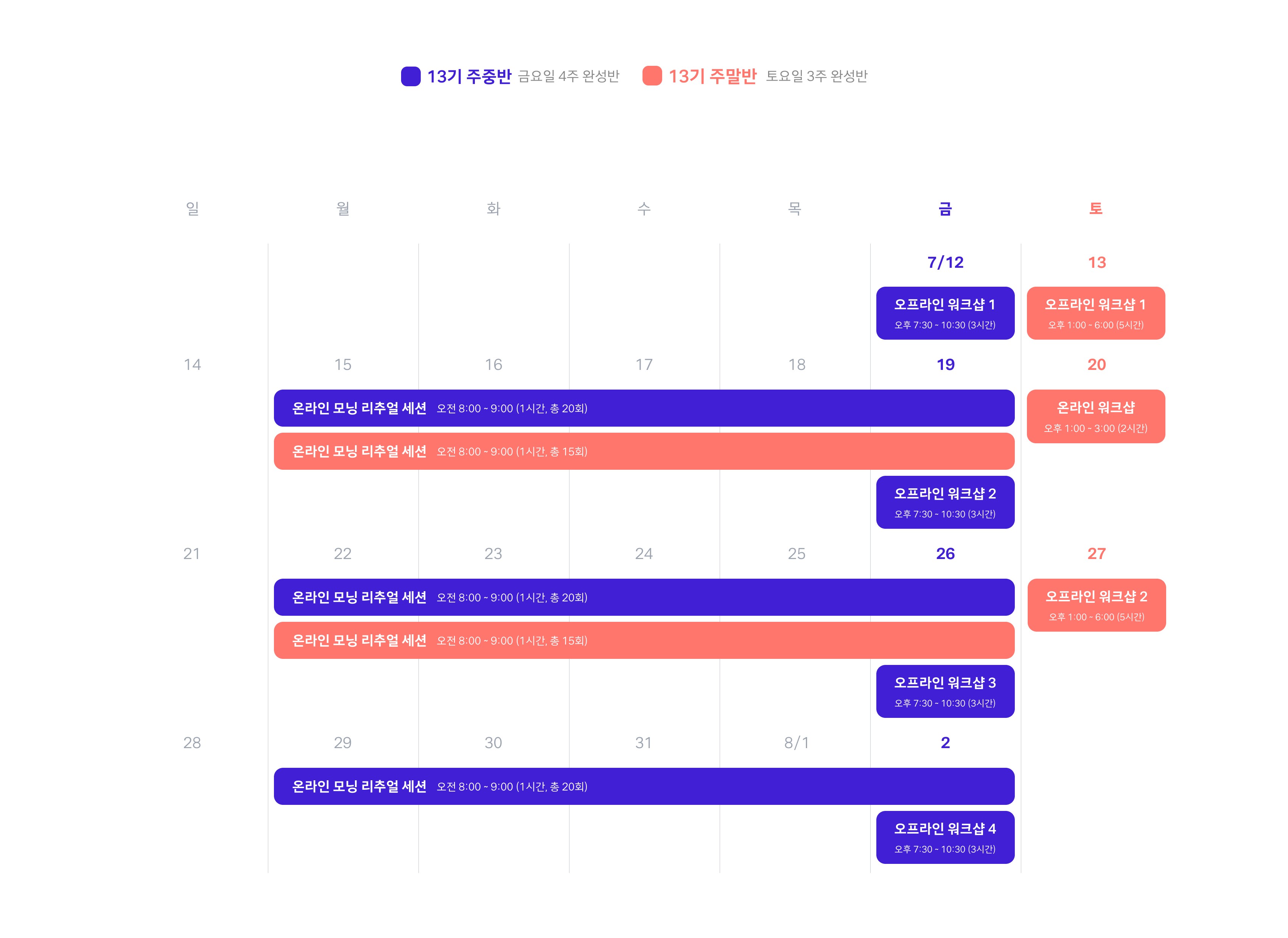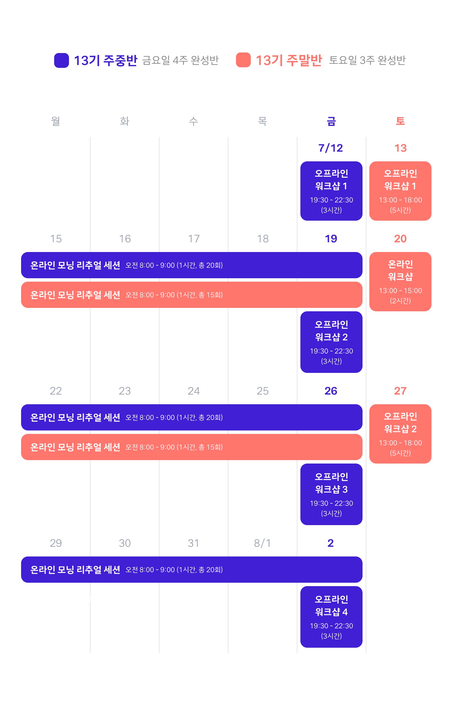 7/13 ~ 7/27 (토요일 3주 완성반)